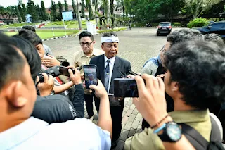 | Sekda Jabar Herman Suryatman saat ditemui awak media di halaman Kampus IPDN. |